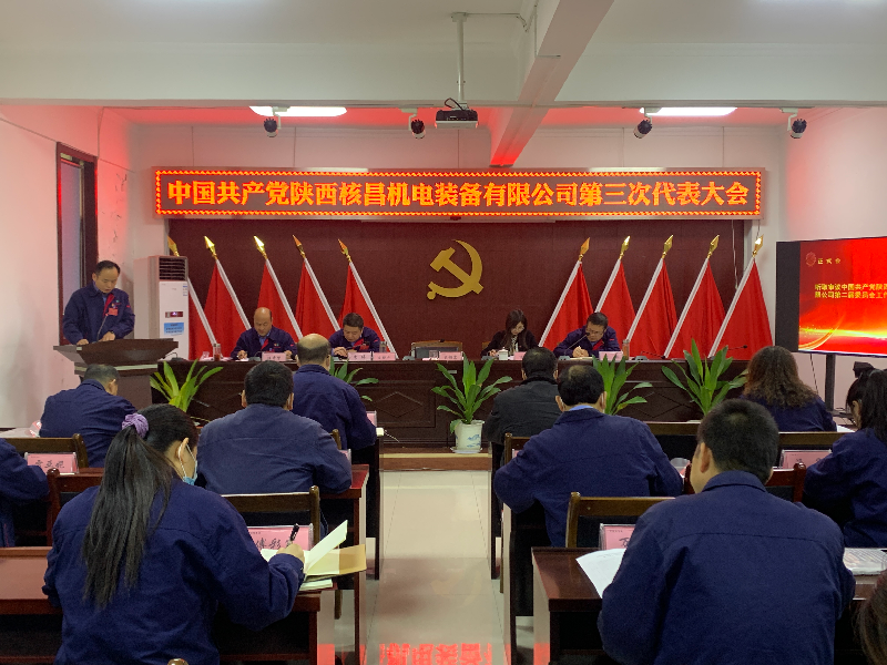 12月9日,中國共產黨陜西核昌機電裝備有限公司第三次代表大會隆重召開,公司六個黨支部的三十名黨員代表參加會議。集團公司機關黨委委員、黨委副書記、黨委工作部副部長、團委書記治...
