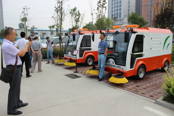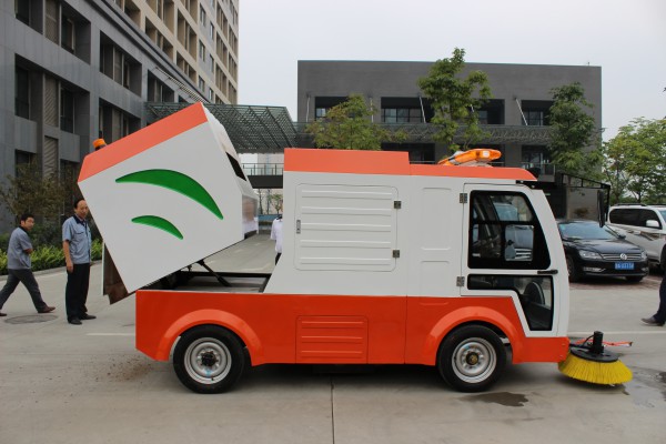核昌公司在2014年與咸陽市公路局合作研發生產的第一代電動清掃車,于2015年6月將15臺電動清掃車成功交付。以此為契機,在第一代的基礎上進行技術改進,提高了機械零部件加工精度,車輛行駛更加平穩,上料機構結構簡化并增加防塵,減小了工作噪音,電機的可靠性得到改進,大大減少了非作業時段對機器必要的磨損,極大延長機器使用壽命。第二代電動清掃車于2015年8月23日成功誕生,經廠內測試基本功能運行正常,8月24日2臺電動清掃車在中陜核工業集團公司進行現場演示,使用效果良好。
