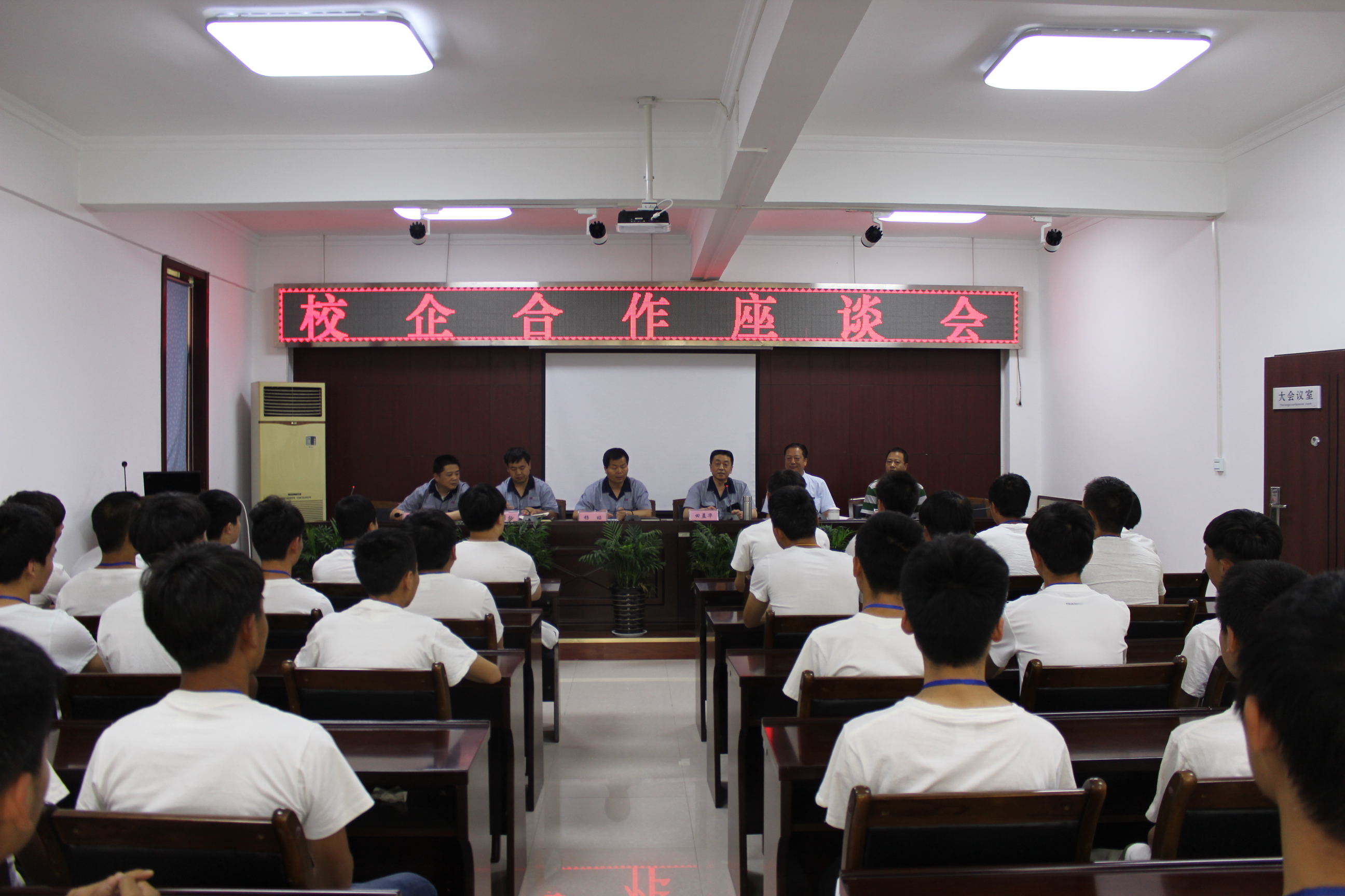 參觀完車間后,企業(yè)領(lǐng)導(dǎo)和師生進(jìn)行了座談。在座談會(huì)上副總經(jīng)理?xiàng)钫褜?duì)公司的企業(yè)組織架構(gòu),經(jīng)營等情況作了詳細(xì)的介紹,并就企業(yè)對(duì)技能人才的要求,向來公司的學(xué)生提出殷切的希望。隨后學(xué)生們認(rèn)真觀看了公司產(chǎn)品宣傳片。