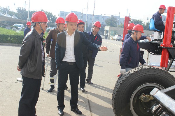 首先,邵飛隊長、權建平書記在公司全體班子成員的陪同下,參觀了公司生產車間,重點觀看了1600智能型拖車鉆機、泥漿不落地系統以及環保電動清掃車等新產品的現場演示,邵飛隊長和權建平書記認真聽取產品介紹,詳細了解產品的性能。