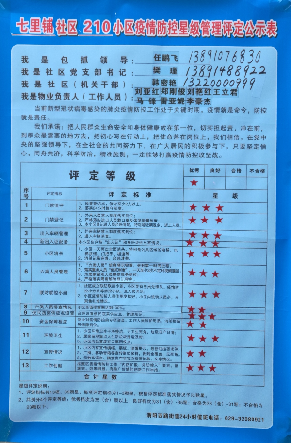 經過秦都區(qū)政府相關部門檢查及社區(qū)測評,核昌公司生活區(qū)的疫情防控工作受到了地方政府的肯定和好評。在社區(qū)“小區(qū)疫情防控星級管理評定公示欄”獲得優(yōu)秀評級。成績的取得歸功于組織的正確領導、一線同志的不懈擔當和全體核昌人的共同努力。
