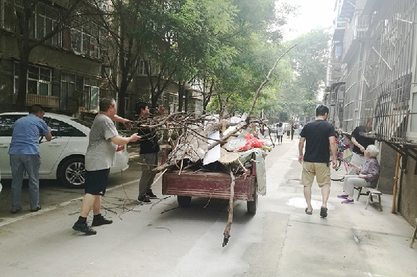 物業(yè)全體工作人員明確任務(wù)、分工合作,充分發(fā)揚不怕臟、不怕累的精神,拿起掃把、鏟子對小區(qū)衛(wèi)生死角進行仔細清掃,他們?nèi)宄扇?,除雜草、撿垃圾、掃落葉、清理樓道雜物,干的熱火朝天,汗流浹背,大掃除活動井然有序的開展。